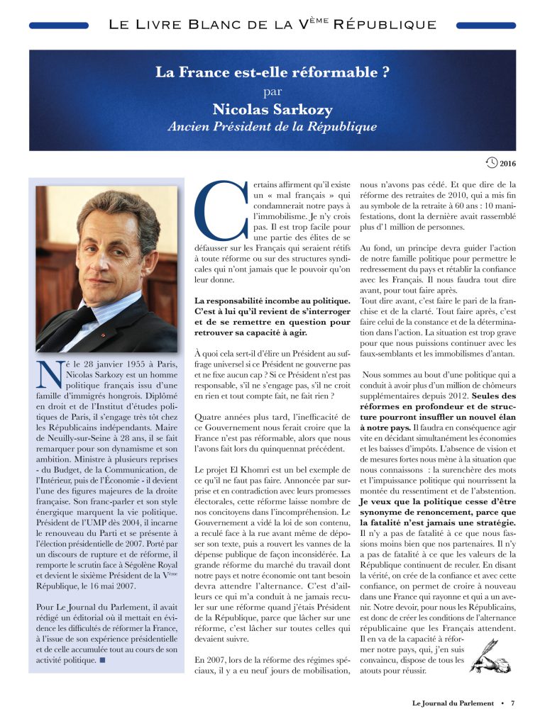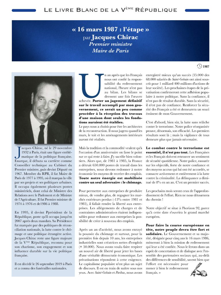 Conçu et réalisé sous le patronage de la Commission Malraux, le Livre Blanc de la Vème République réunit une sélection des grands articles ou entretiens réalisés en exclusivité par Le Journal du Parlement, autour des plus grands noms de la vie politique française. Ces documents, récupérés, scannés ou recomposés dans les archives du Journal ont donc été réunis, notamment, sous le regard attentif du Président Alain Malraux et de l’Historien Laurent Wirth, Docteur et agrégé d’Histoire, Ancien professeur à l’IEP de Paris, Doyen (h) du groupe Histoire et Géographie à l’Inspection Générale de l’Education Nationale…